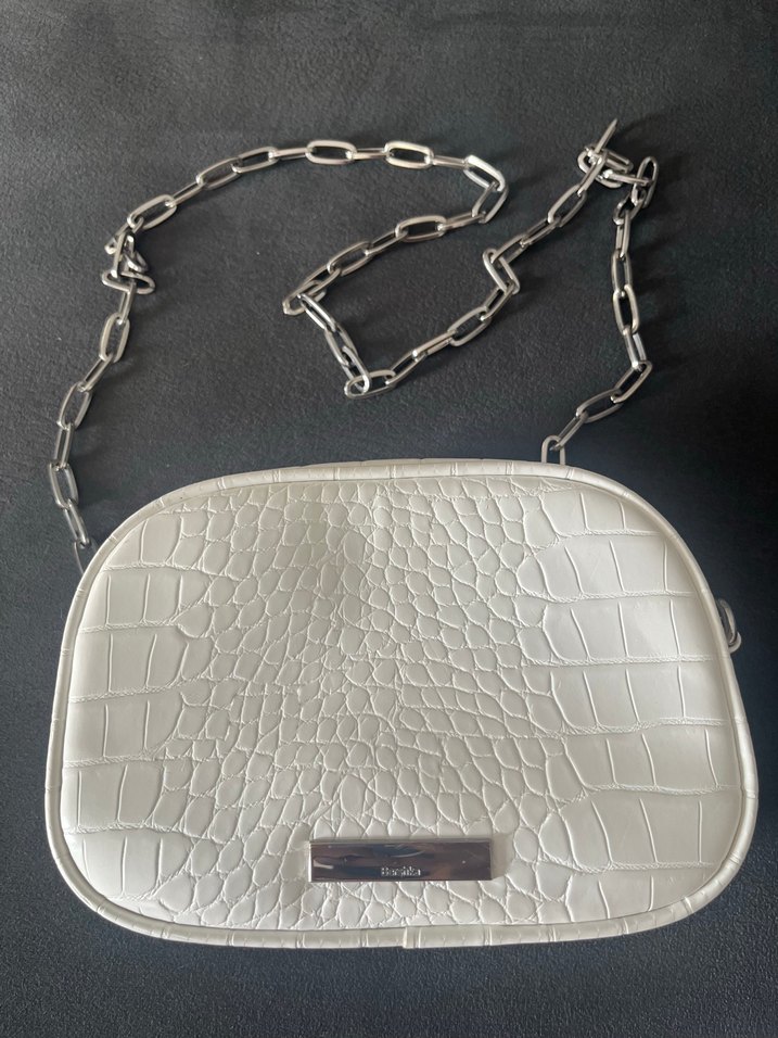 Beyaz Yılan Derisi Desenli Zincirli Kadın Çanta