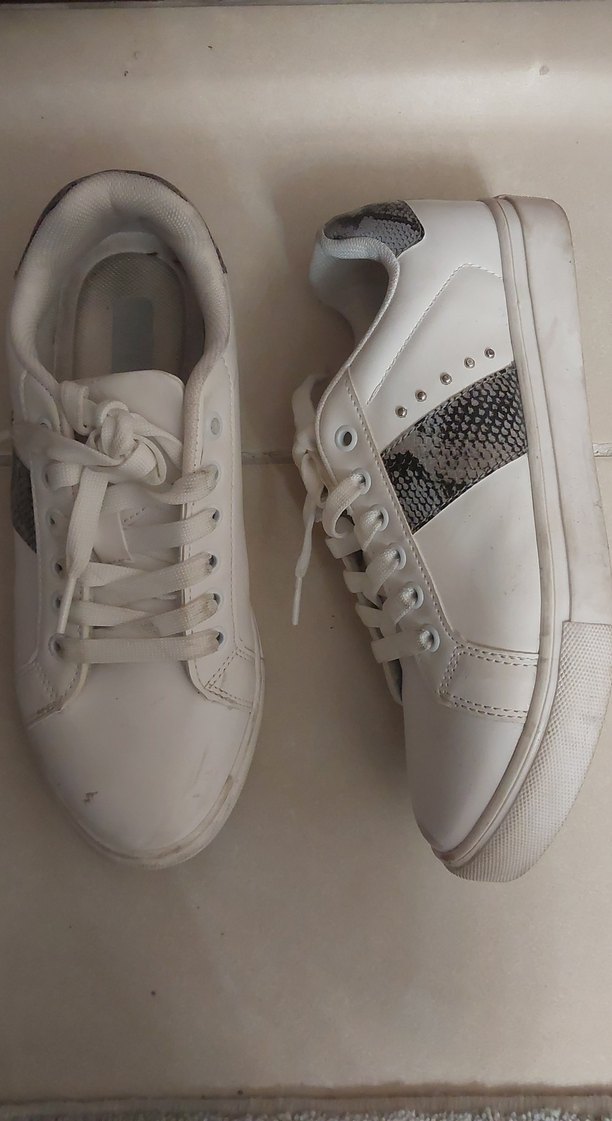 Beyaz Yılan Desenli Bağcıklı Sneakers
