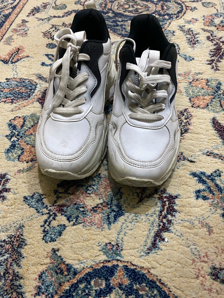 Beyaz Yılan Desenli Bağcıklı Sneakers fotoğrafta göründüğü gibi