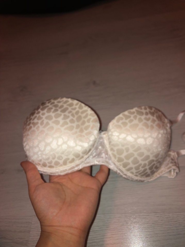 Beyaz renkte, yılan desenli ve bohem tarzda hafif bir sütyen.