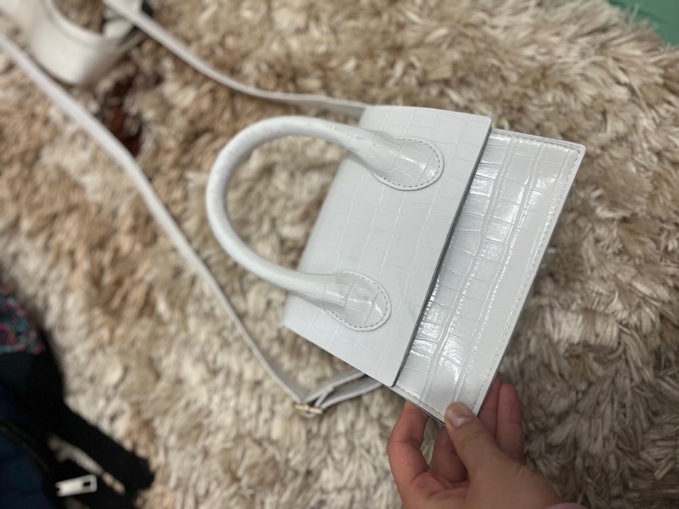 Beyaz Yılan Desenli Deri Kadın Çanta