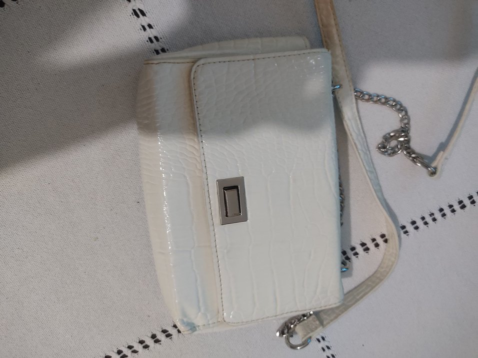 Yılan deseni detaylı beyaz deri kadın çanta, fermuarlı ve günlük kullanım için uygun. Streetwear tarzıyla uyumlu. yıkanması gerekir başka sorunu yok