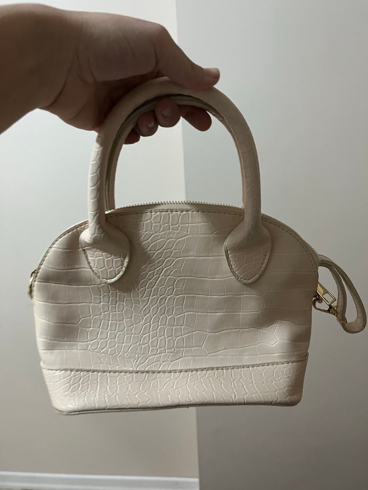 Yılan desenli dokulu beyaz deri kadın çantası, fermuarlı kapanışlı ve klasik sokak stili. Günlük kullanım için uygundur.
