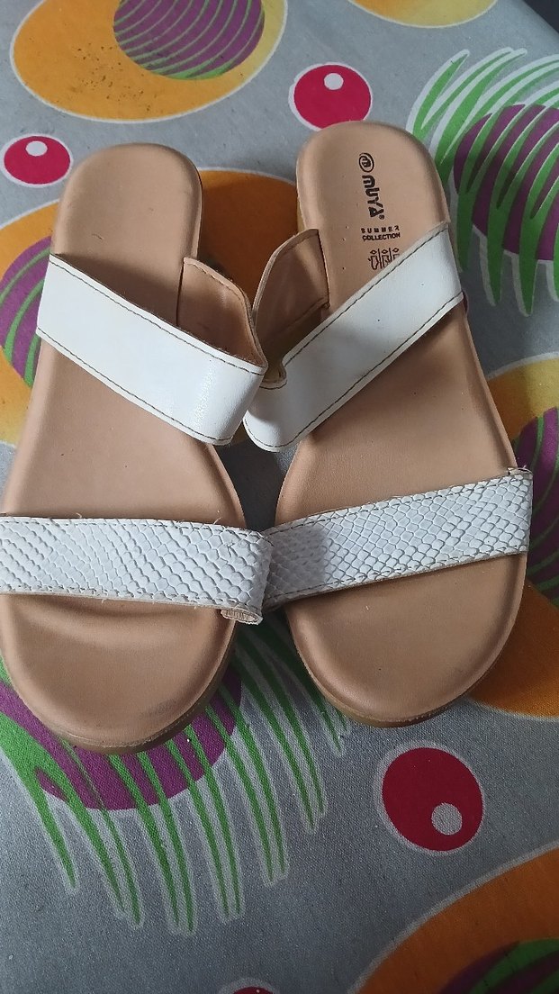 Beyaz yılan desenli bantlara sahip, dolgu topuklu kauçuk kadın terlik. Tokalı tasarımıyla gündelik, bohem ve minimalist tarz sunar. hiç kullanılmadı.iaade kabul edilmeyecek