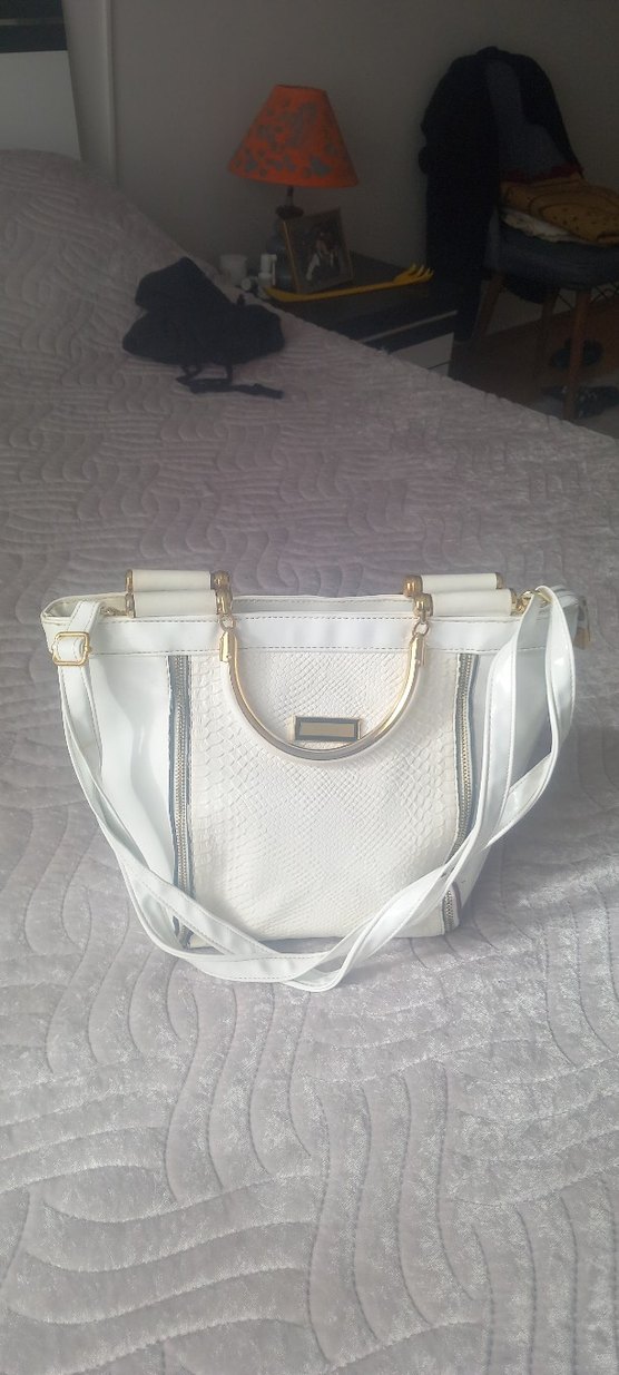 Beyaz yılan desenli kadın çantası, fermuarlı kapanışlı ve sentetik kumaştan yapılmıştır. Minimalist ve klasik şıklıkta, günlük kullanıma uygundur. marka temsilidir