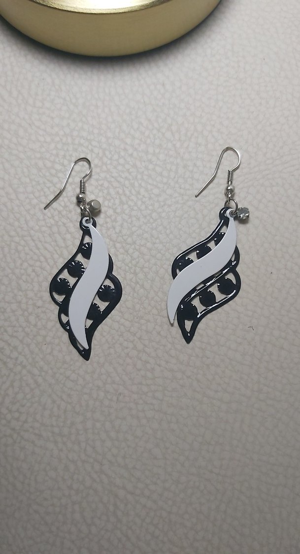 Kısa uzunlukta, beyaz ve gri tonlarda yılan desenli, boncuk detaylı minimalist ve bohem tarzda küpeler.