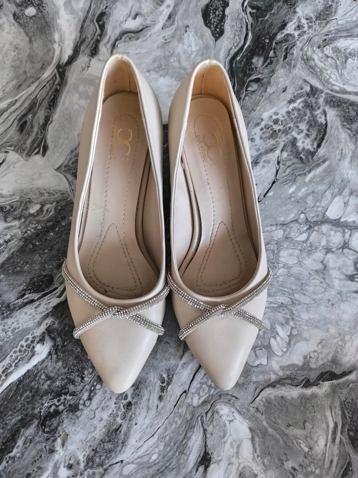 payet detaylı dolgu topuklu kadın ayakkabısı, modern klasik tarzda, yumuşak ve pürüzsüz malzemeden üretilmiştir.