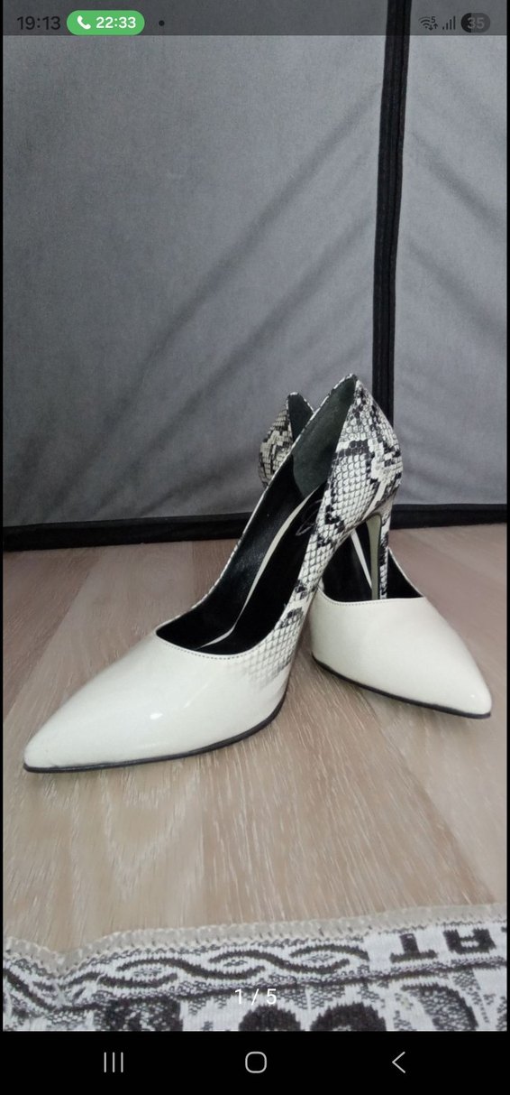Yılan desenli, beyaz stiletto 39-40 nm uyumlu. 2 kez giyildi