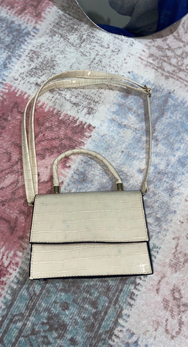 Beyaz Yılan Desenli Tokalı Kadın Çanta