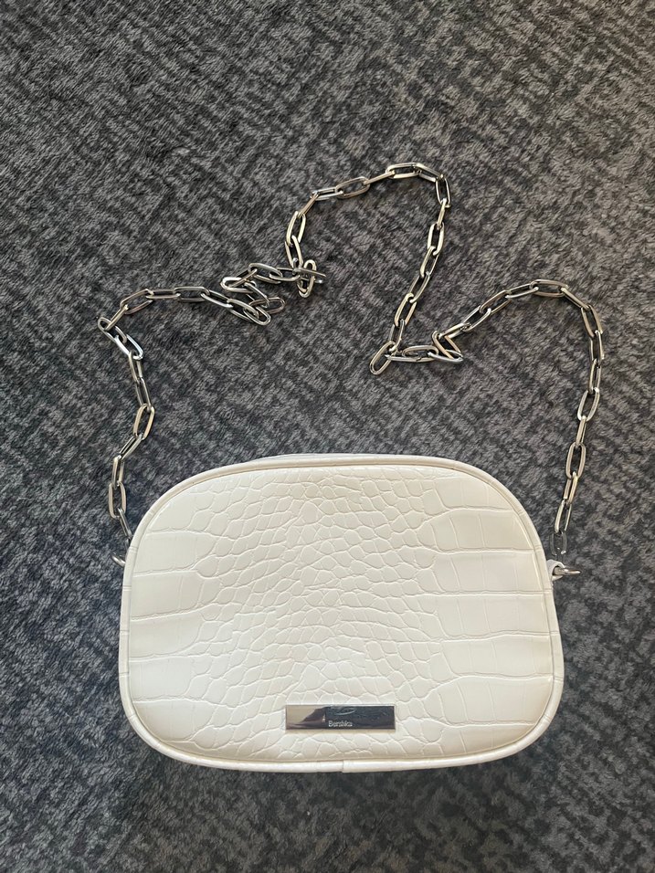 Beyaz Yılan Desenli Zincir Detaylı Deri Çanta