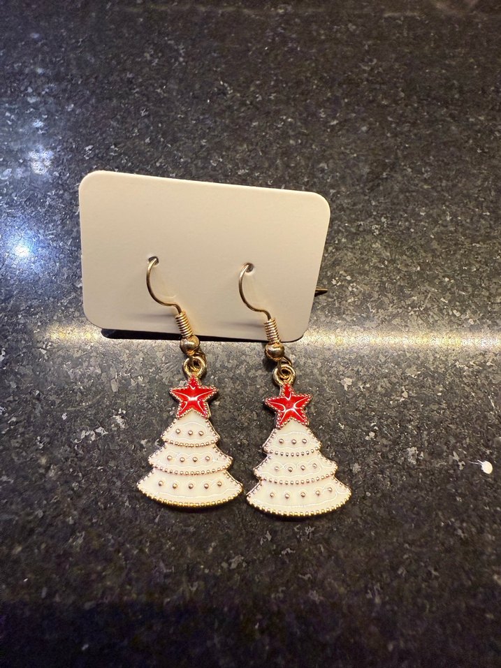 Beyaz Yılbaşı Ağacı Temalı Küpeler