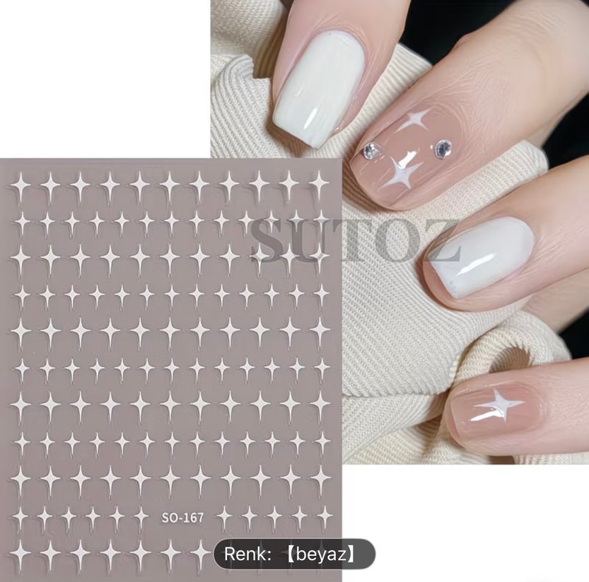 Beyaz yıldız tırnak süsleri, tırnaklara zarif bir parlaklık katıyor. ✨kendinden yapışkanlı ve tek yapraktır