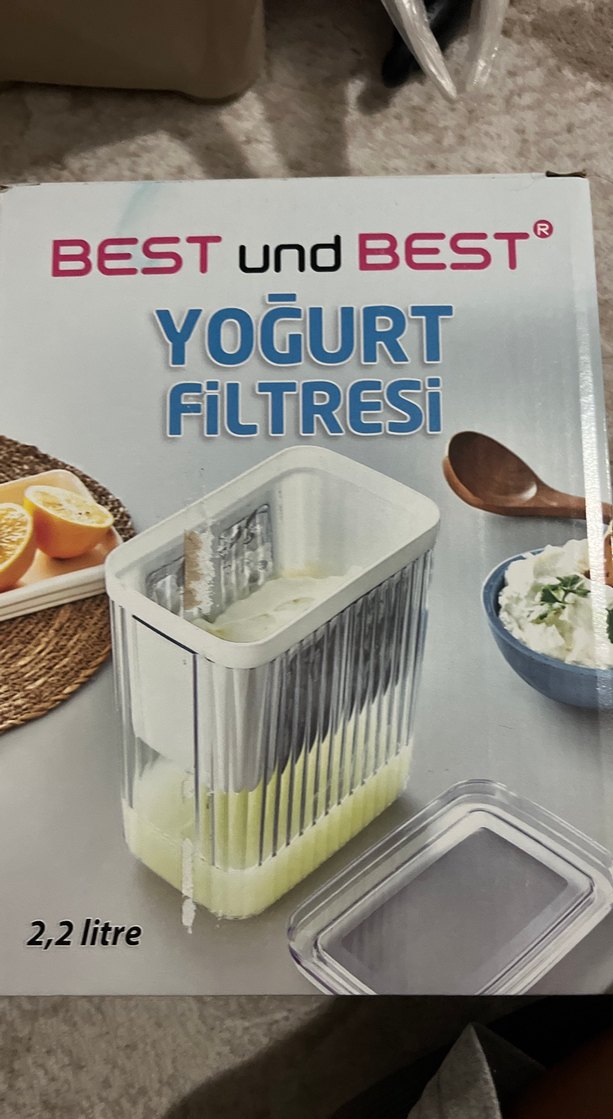 2,2 litre kapasiteye sahip beyaz yoğurt filtresi, şeffaf kapak ile birlikte gelir.