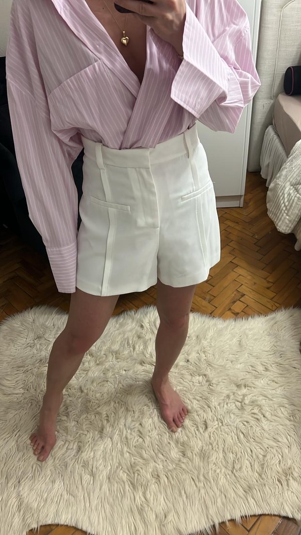 Beyaz yüksek bel mini şort, düz ve desen içermeyen tasarımıyla rahat bir kesime sahiptir. Pürüzsüz sentetik kumaştan üretilmiş, günlük kullanıma uygundur. ✨