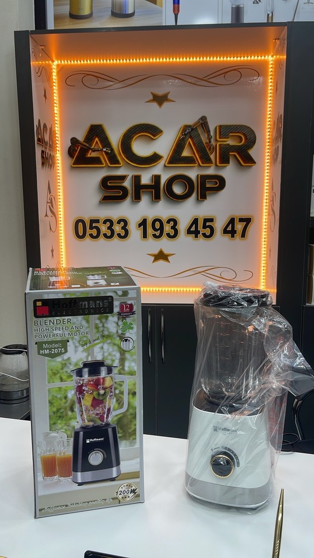 Beyaz renkte, 1200W güçlü motorlu yüksek hızlı blender. Şeffaf haznesi ve kolay kullanımlı düğmesi bulunur.