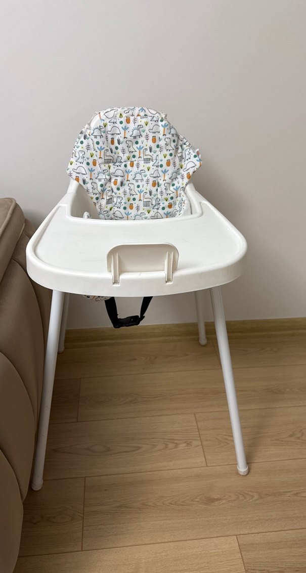 Beyaz Yüksek Sandalye Gri Desenli Minderli