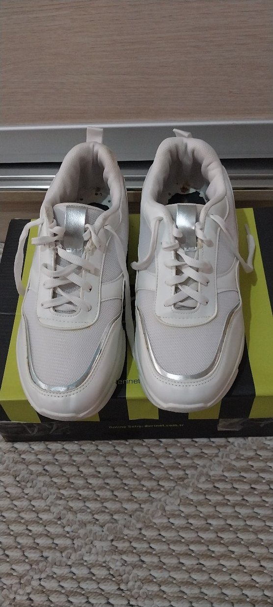 Bağcıklı beyaz yüksek topuklu spor ayakkabı, gri detaylarla sade tasarım. Kauçuk tabanlı, spor ve günlük sokak stili için uygun. içine keçe konulması gerekli