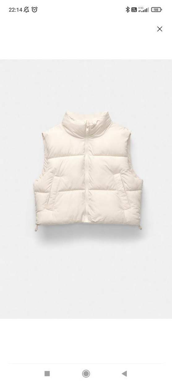 Yumuşak kürk kumaştan, beyaz renkte, yüksek yakalı ve kolsuz şişme yelek. Minimalist sokak stiliyle günlük kullanıma uygun, vücuda oturan kesim. ❄️