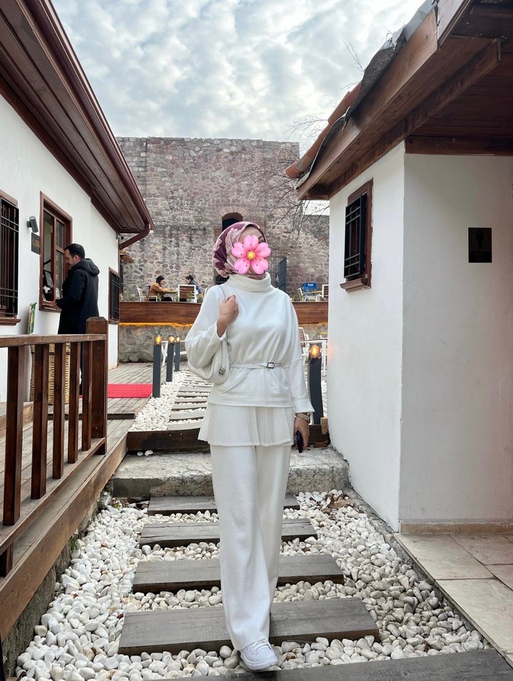 Beyaz takım ucundaki piliseli İçlik bana aittir takıma dahil değildir takım açıklarında giyinebileceği bi takımdır rahattır sadece bi kere giyildi