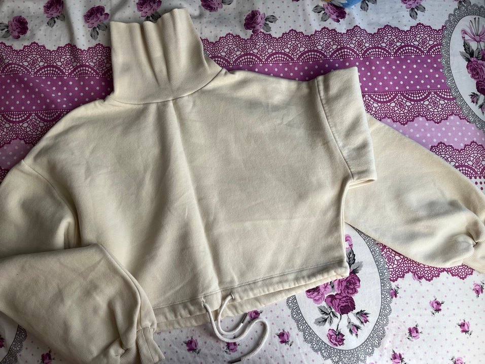 Beyaz renkte, yüksek yakalı ve kolsuz kadın sweatshirtü. Pamuklu yumuşak dokusu, rahat ve salaş kesimiyle günlük kullanım için uygun. Pastel tonuyla şık ve rahat bir tarz sunar.