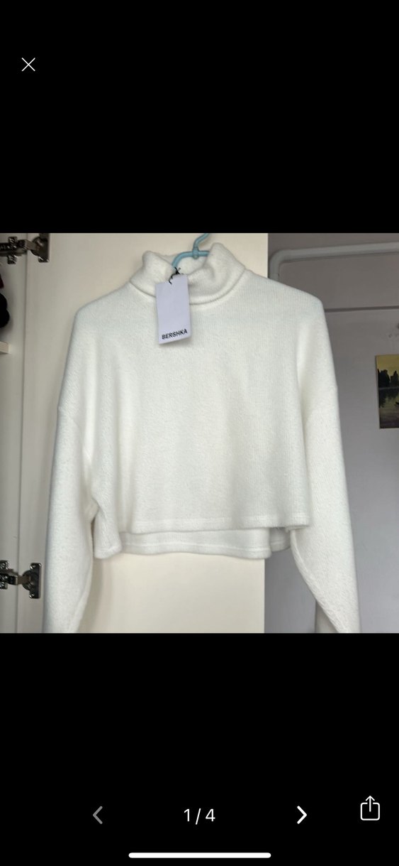 Beyaz örgü kadın kazak, yüksek yakalı ve uzun kolludur. Rahat kesimi ve yumuşak dokusuyla midi boyda, günlük sokak stili için uygundur. ❄️