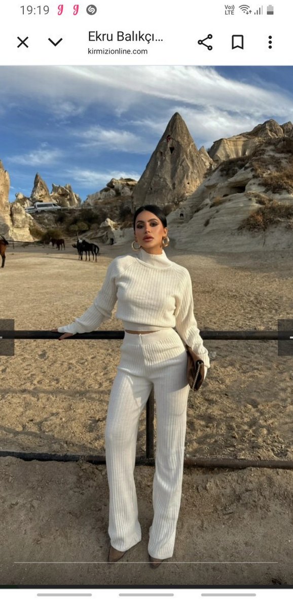 Beyaz Yüksek Yakalı Triko Kadın Eşofman Takımı