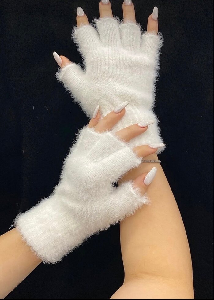 Beyaz Yumoş Peluş Kesik Parmak Eldiven -Yumuşacık ve Tüylü,Sıfır