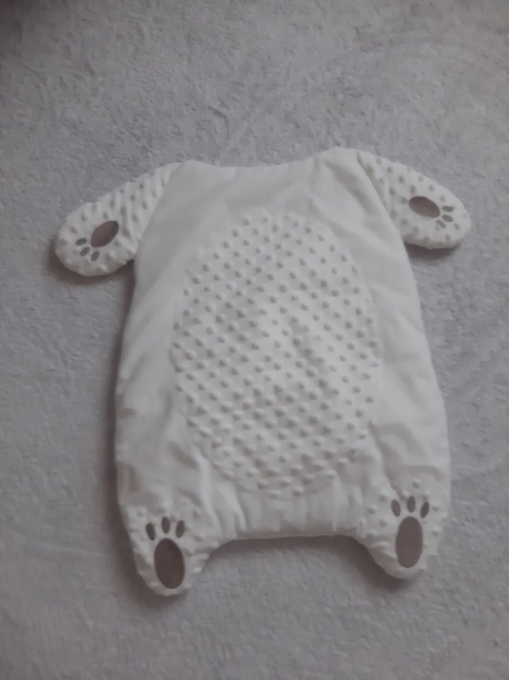 Yumuşak ve sıcak beyaz bebek uyku minderi, dokulu yüzeyi ve köşelerde pati desenleri ile rahatlık sağlar.