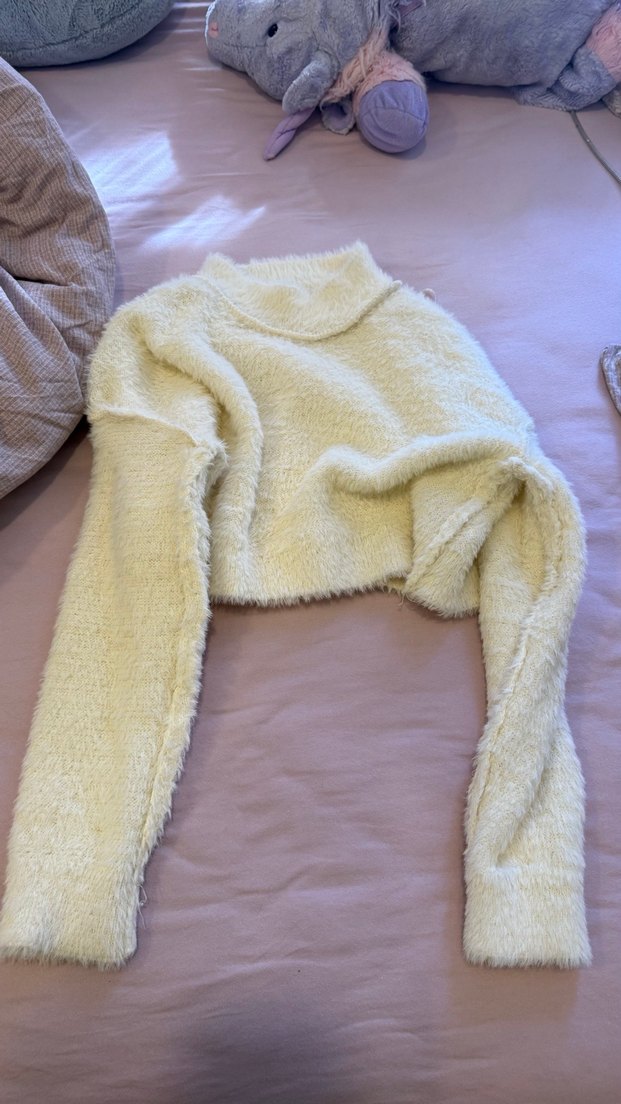 Yüksek yakalı, uzun kollu beyaz kadın kazak, yumuşak ve sıcak dokulu kumaştan, bol kesim ve normal midi boyda. Örgü dokusu ve sade tasarımıyla günlük kullanıma uygun. Crop boydadır fiyat sondur teklif yapmayın lütfen hiç de giyilmedi❄️