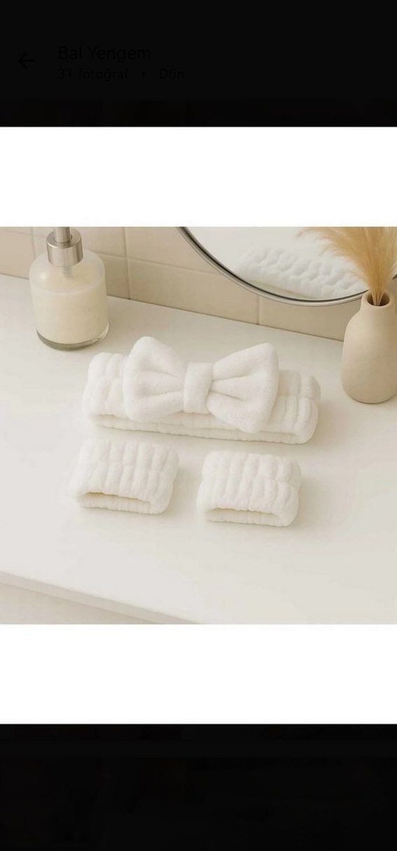 Yumuşak kumaştan yapılmış, fiyonk detaylı beyaz saç bandı ve uyumlu bilekliklerden oluşan set. Rahat sokak stili için uygun. Suyu emici özelliğe sahip bilekliği yüzünüzü yıkarken suyun dirseklerinize akmasını engeller