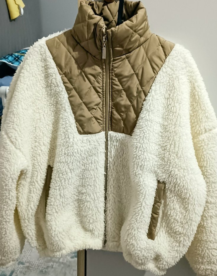 Beyaz Yumuşak peluş mont