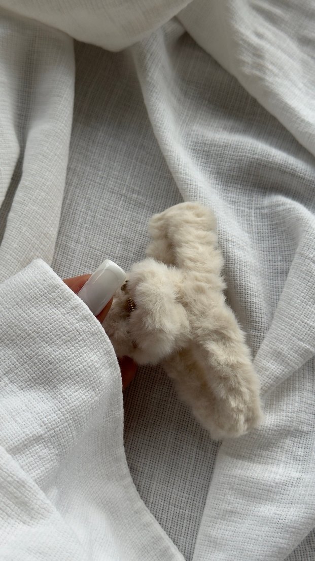 Yumuşak yün malzemeden yapılmış, kürklü detaylı beyaz pastel renk kız çocuk terliği. Desensiz, sade ve temel tasarım.