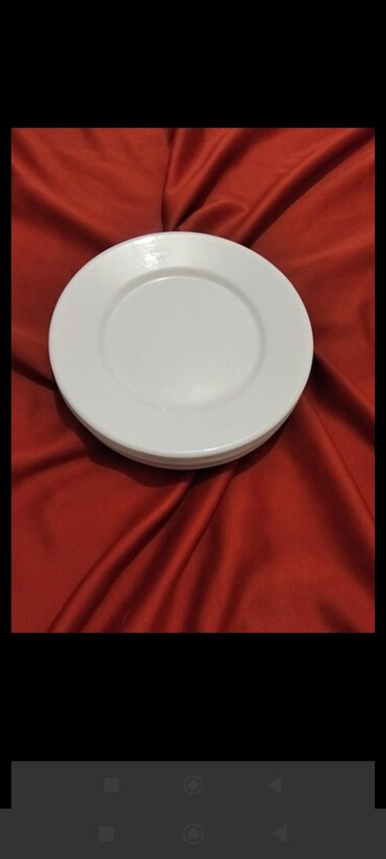 Beyaz yuvarlak tabak, çeşitli yiyecekler için uygun, pürüzsüz yüzeye sahip. Basit ve temiz tasarım. ️takımı