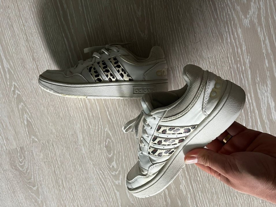 Beyaz zebra desenli şeritlere ve bağcıklı tasarıma sahip kadın spor ayakkabısı. Yüksek tabanlı kauçuk tabanıyla spor ve sokak stilini birleştirir.