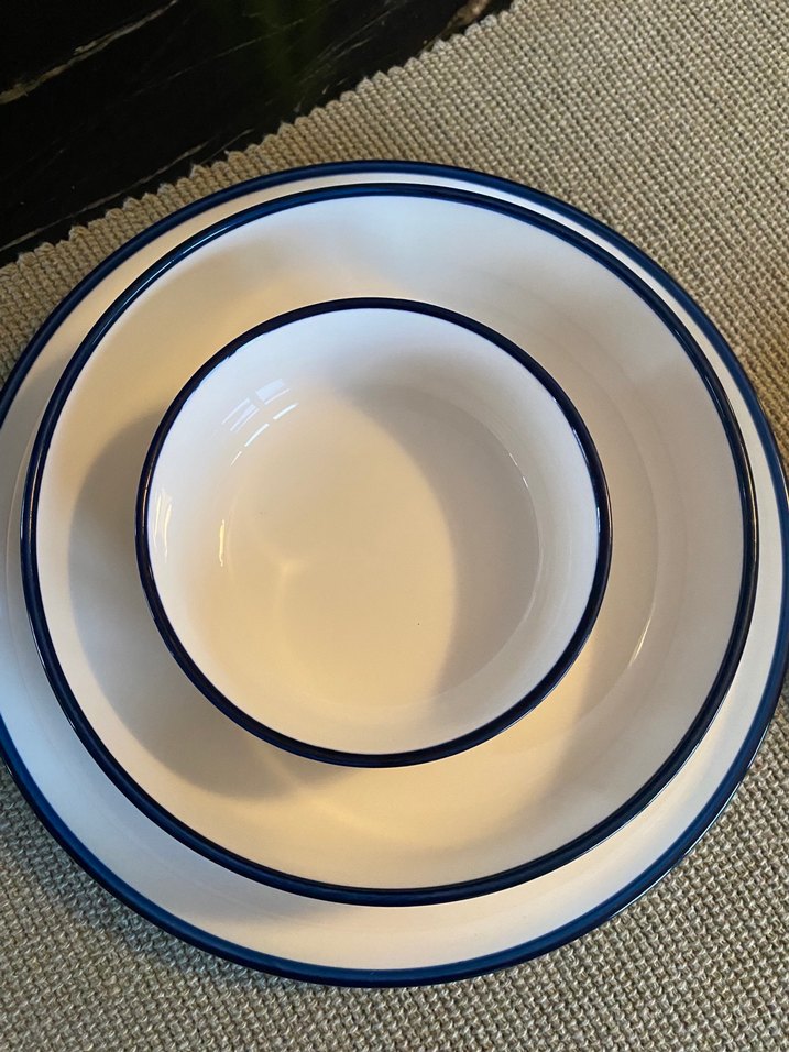 Beyaz zemine lacivert Çizgili Yemek takımı