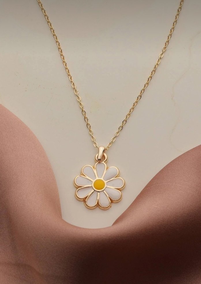 Beyaz renkli, zincir detaylı ve papatya desenli bu kolye, bohem ve minimalist tarzda günlük kullanıma uygundur. Orta uzunluktadır. Paslanma kararma yapmaz. Sıfır üründür.