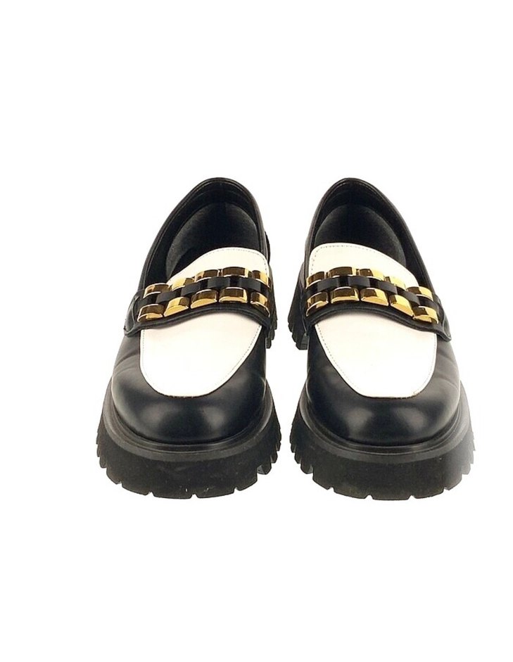 Zincir detaylı, loaferlar, platform topuklu. Ofis için klasik ve sokak stiline uygun. Tertemiz ve sorunsuzdur. Sadece 1 kez giyilmiştir. Topuk 3 cm