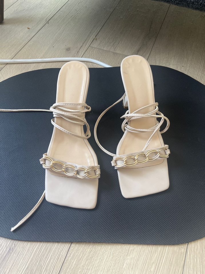 Beyaz Zincir Detaylı Topuklu Kadın Ayakkabı