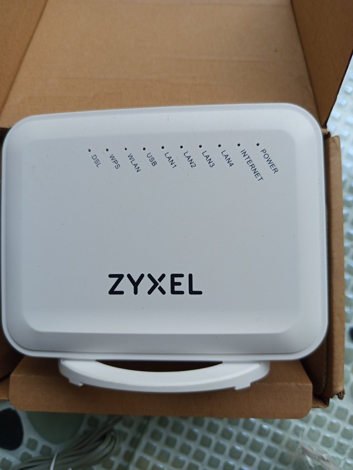 Beyaz renkte Zyxel cihaz, güç, internet, LAN, WLAN, USB ve WPS göstergeleri ile ağ bağlantısı sağlar. sıfır kutusunda garanti fatura yok