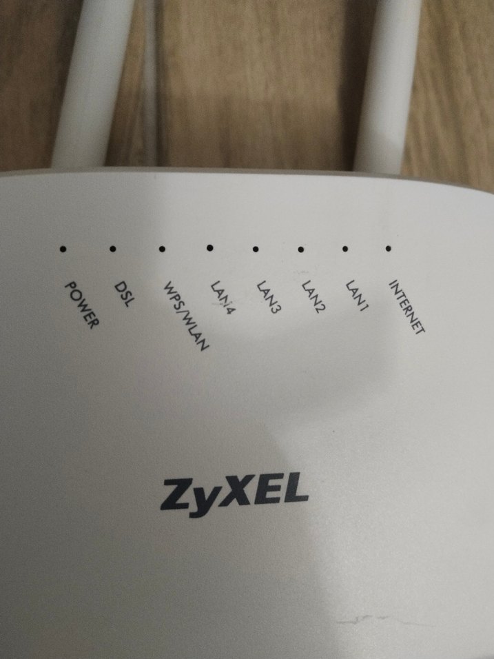Güç, DSL, WPS/WLAN, LAN ve internet bağlantı göstergeleri bulunan beyaz ZyXEL modem ag.gorseldekinin aynısı gönderilecektir