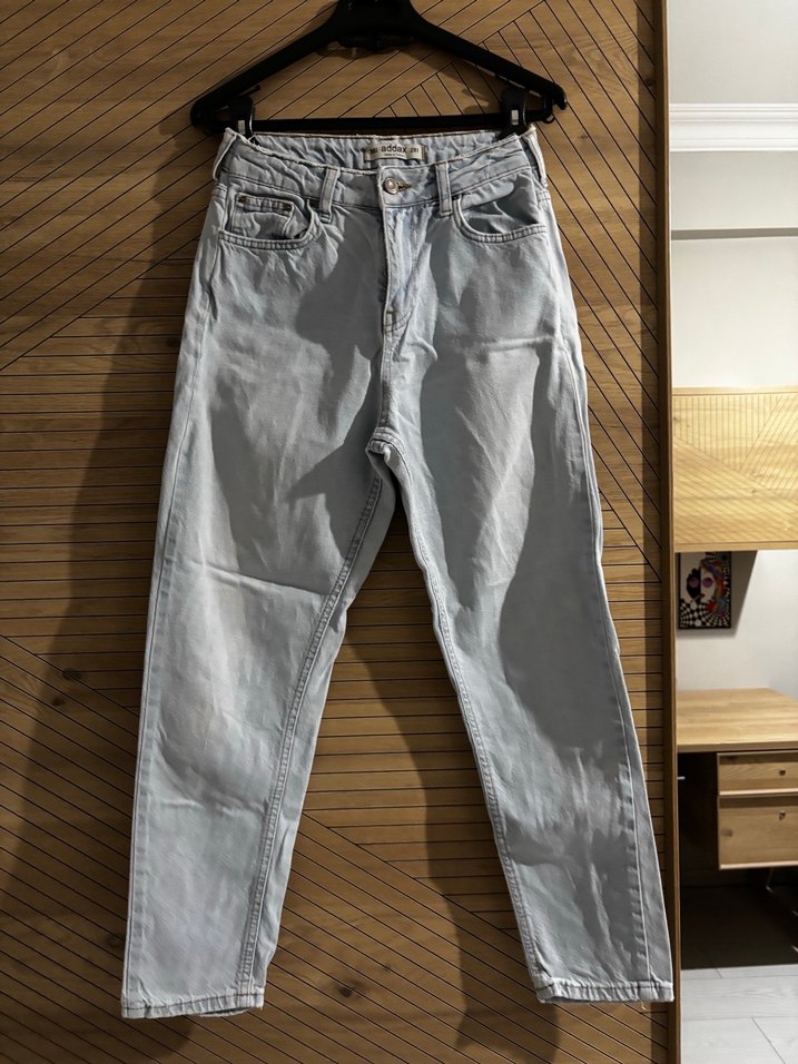 Beyazımsı renkte, normal boy ve regular fit kesime sahip kadın denim jean. Günlük kullanıma uygun, deseniz sade ve rahat bir sokak stili sunar.