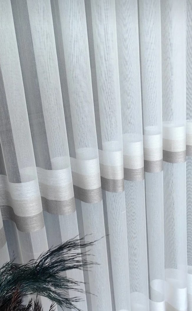 Vizyon ve beyaz çizgili desene sahip modern tül perde, mekana hafif ve ferah bir görünüm katar. ️DİKİŞSİZ METRE FİYATI ✨ Kalite: Orijinal Brillant marka, 1/3 Sık Pile ve etekleri kurşunludur. Kolaylık: 30 derecede yıkayıp nemli asın; ütü gerektirmez. Özel Dikim: Ölçülerinize göre size özel dikilip gönderilir. Fiyat: Belirtilen fiyat, dikişsiz metre fiyatıdır. Ölçü (En x Boy): En: Kornişten kornişe ölçün. Boy: Tavandan yere sıfır ölçüp 3 cm (petek üstü için 2 cm) eksik sipariş verin