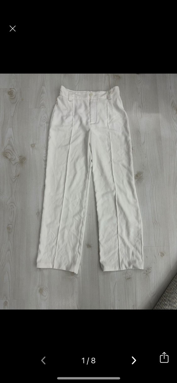Beyaz , rahat kesimli ve minimalist tarzda kadın pantolon, günlük kullanıma uygundur.