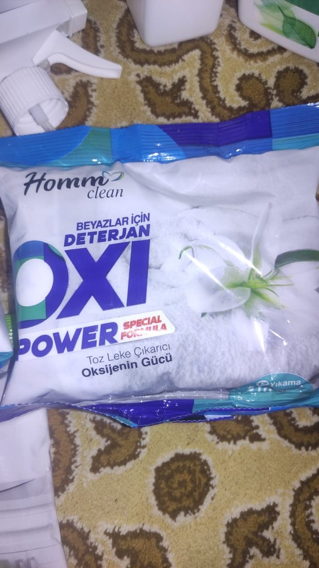 Homm clean Oxi Power, beyazlar için toz deterjan olup, oksijenin gücüyle leke çıkarır.