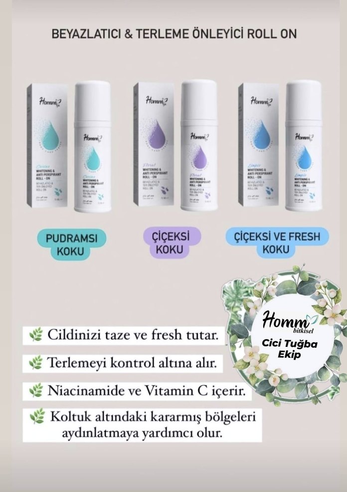 Terlemeyi kontrol altına alan, cildi taze tutan kadın deodorantı. Niacinamide ve Vitamin C içerir, koltuk altındaki kararmaları aydınlatmaya yardımcı olur. Pudramsı, çiçeksi ve çiçeksi-fresh kokulu seçenekler sunar. sipariş için dm