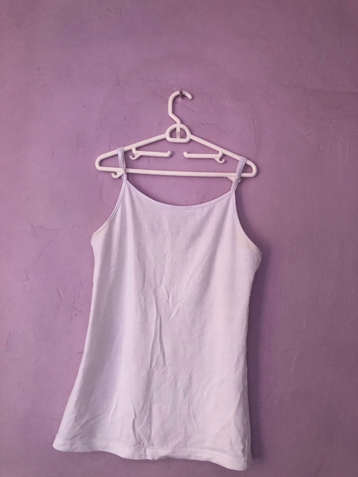 Beyaz renkli, pamuklu, ince askılı ve sade tasarımlı kadın atlet. Günlük kullanıma uygun, rahat ve şık bir sokak stili parçası.