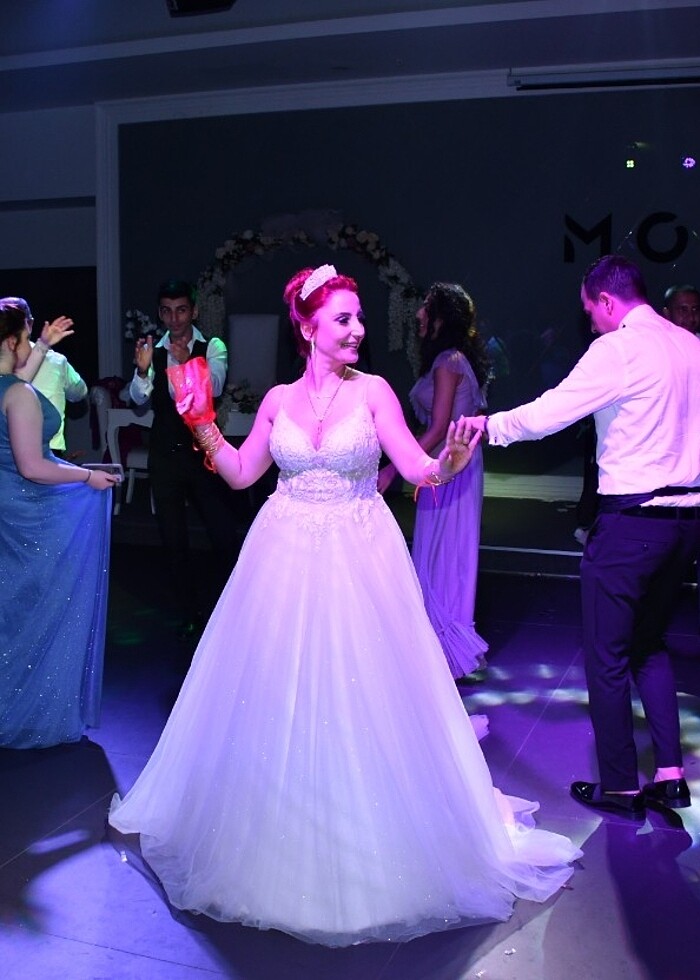 Üst kısmı tamamen kristal el işlemesi transparan bel Helen model. Tarlatan kullanarak istediğiniz kadar kabarık yapabilirsiniz. Ben 2 numara kullandım sade olması için ama prenses model olarakta çok hoş duruyor. Sadece düğünüm de kullandım.Sıfırdan bir farkı yok nerdeyse. Özel tasarım La sirena nin bir modeli . Fransız detaylı ve kesinlikle ağır değil. Etek tül kısmı simli üstündeki kristallere uyum sağlaması için. Işıl ışıl bir gelin olmak istiyorum diyorsan aradığın gelinlik işte burda. Antalya da olanlar için deneme fırsatı verebilirim. 38 beden tam kalıp. Göğüs 89 bel 71 Göğüste 80-90 bel 65-75 arası tadilat gidebilir model bozulmaz .