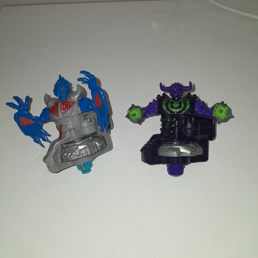Mor ve mavi renklerde, detaylı tasarımlı iki karanlık temalı aksiyon figürü. Koleksiyon veya oyun için uygundur. adet 500