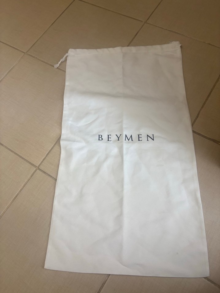 Beymen baskılı gri logolu, yumuşak kumaştan yapılmış beyaz çantası, ipli kapama özelliğine sahip.