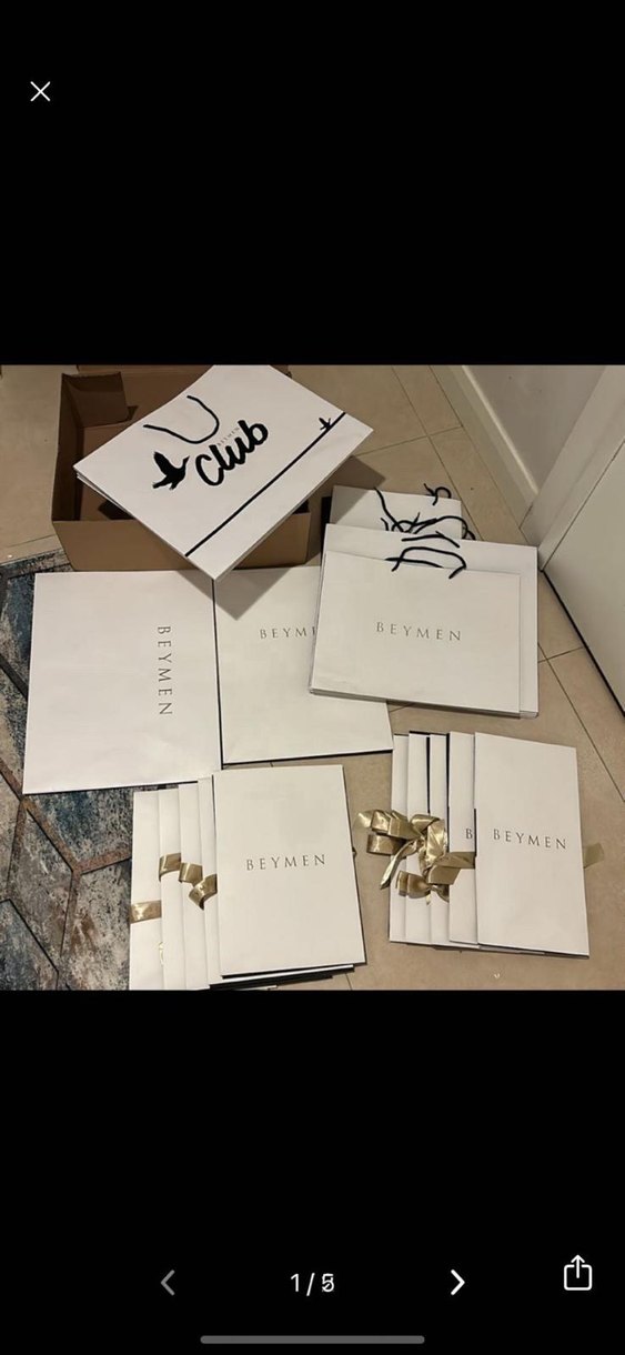 Beymen logosu ve şık kurdele detaylarıyla parlak beyaz hediye çantaları. Hediyelerinizi tarzla sunmak için ideal. Adet fiyatıdır.